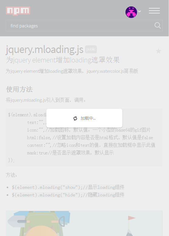 将jquery.mloading.js和jquery.mloading.css引入到页面,调用: